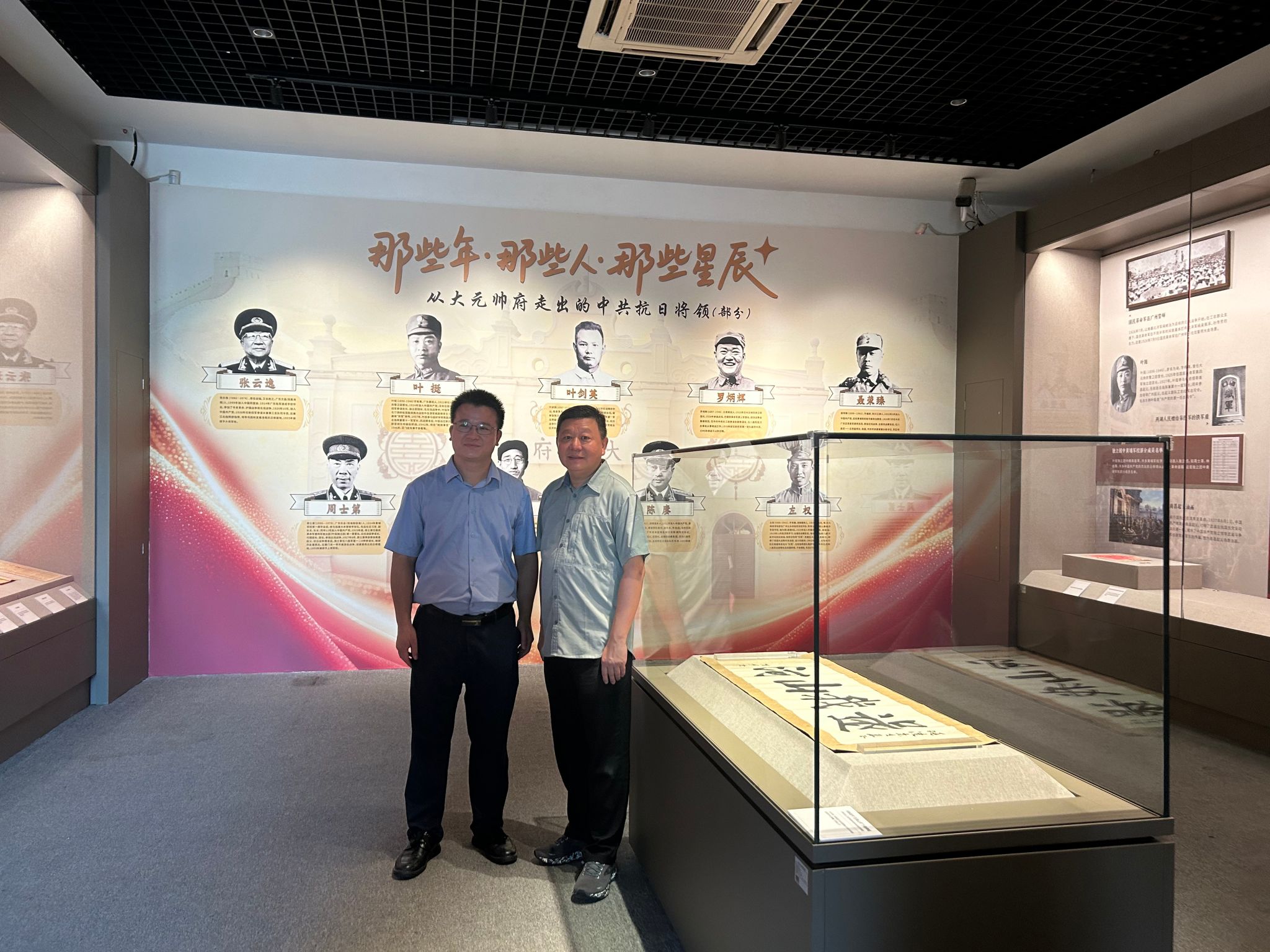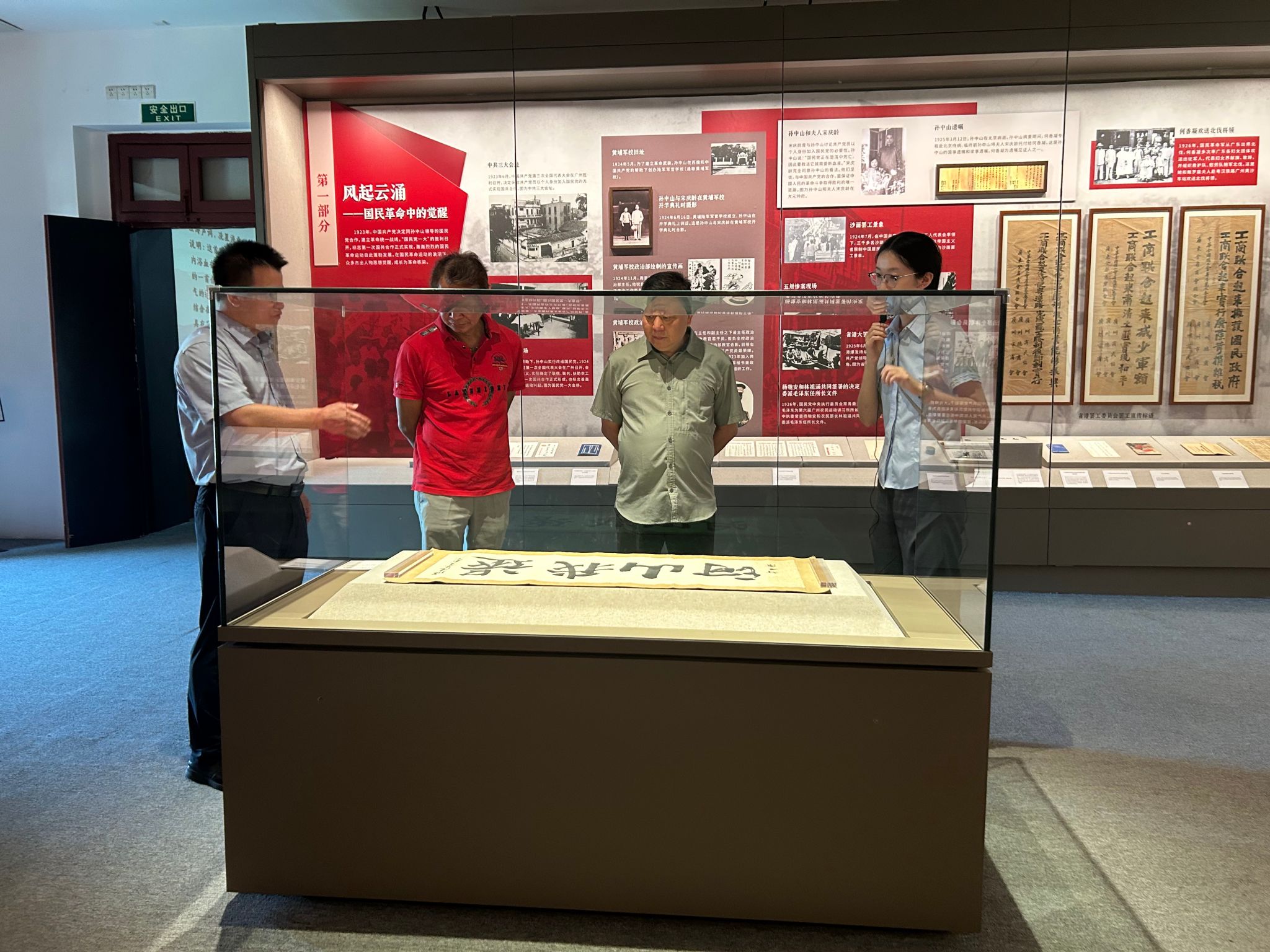房顺理先生曾慕名到廖仲恺何香凝纪念馆寻访“还我山河”横幅,获悉在《还我河山》展览展出后,向我馆提出欲前往观展。我馆高度重视,与大元帅府纪念馆联系安排了这次参观,我馆主持工作的副馆长刘斌与大元帅府纪念馆文物保管部主任曾舒慧陪同参观。